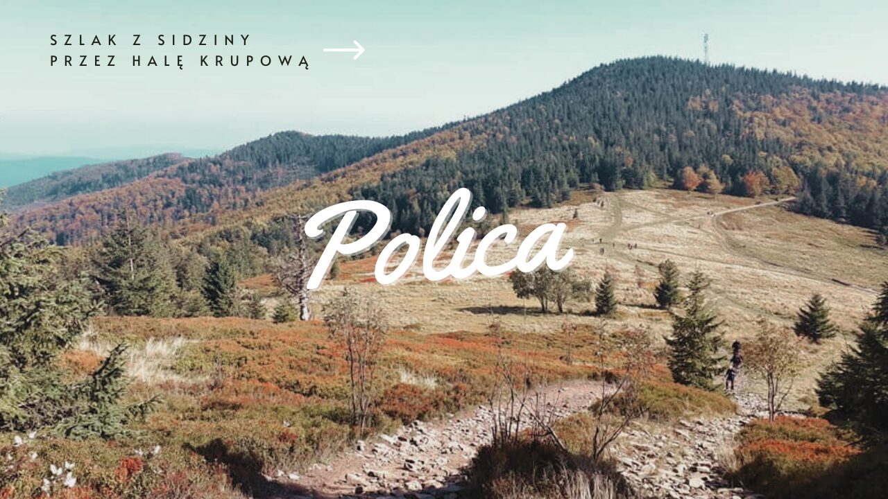 Głównym celem tej wędrówki jest Polica (1369 m n.p.m.) – najwyższy punkt w okolicy, leżący w Paśmie Policy w rejonie Beskidu Żywieckiego. Po drodze naturalnym „przystankiem w programie” staje się Hala Krupowa, bo właśnie tędy prowadzi wejście na grzbiet, a węzłem, który porządkuje układ ścieżek, jest Przełęcz Kucałowa i sąsiednie rozejścia szlaków. Trasa opiera się na znakowanych szlakach PTTK: z Sidziny najczęściej trzyma się czarnego szlaku, a w rejonie przełęczy do głosu dochodzą także warianty zielone oraz odcinek czerwony, którym dochodzi się w stronę Policy.