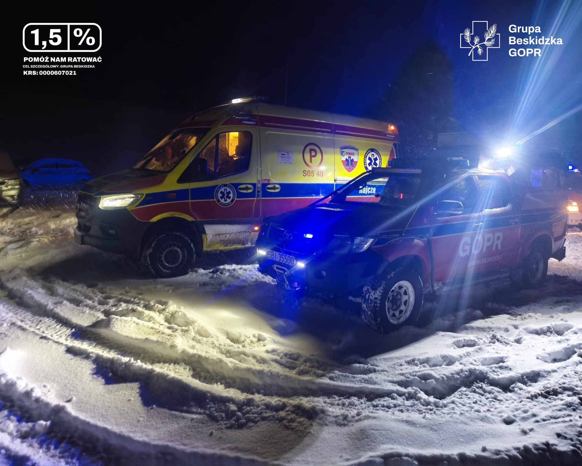 Noc z 31 grudnia 2025 na 1 stycznia 2026 okazała się jedną z najbardziej intensywnych dla ratowników Grupy Beskidzkiej GOPR w ostatnich sezonach. W bardzo trudnych warunkach pogodowych, przy ogromnym ruchu turystycznym i narciarskim, służby prowadziły równolegle wiele skomplikowanych akcji ratunkowych w całym rejonie Beskidów. Jedna z interwencji zakończyła się śmiercią turysty, pozostałe wymagały zaangażowania kilkudziesięciu ratowników, służb medycznych, straży pożarnej, policji oraz słowackich ratowników górskich.