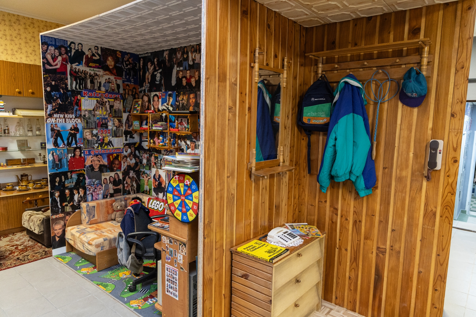 Centralnym punktem muzeum jest wiernie odtworzone mieszkanie z lat 90. Przygotowując ten fragment, zadbano o detale charakterystyczne dla ówczesnych wnętrz. Na ścianach pojawiła się boazeria, a na sufitach kasetony, które w tamtym okresie często montowano w salonach i pokojach dziennych. W części dziennej ustawiono klasyczną meblościankę, a na niej kryształy, naczynia i drobne dekoracje typowe dla polskich mieszkań sprzed kilkudziesięciu lat. Na meblościance znalazło się też miejsce dla żelazka, ustawionego za telewizorem – rozwiązania dobrze znanego wielu osobom pamiętającym tamte czasy.