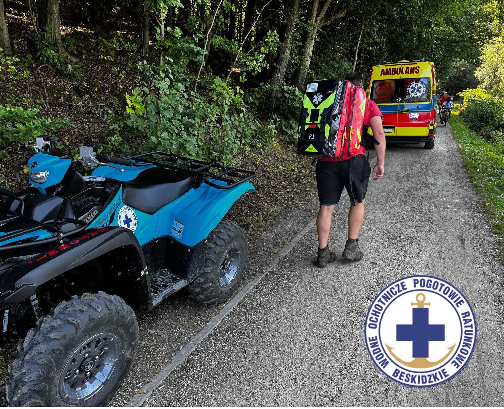 W piątek 15 sierpnia 2025 roku ratownicy Beskidzkiego WOPR otrzymali zgłoszenie od Dyspozytora Medycznego o wypadku rowerzystki na trasie pieszo-rowerowej w Żywcu. Do akcji natychmiast zadysponowano pojazd ATV – Yamaha Grizzly 700 oraz łódź motorową – Sportis s-5700.